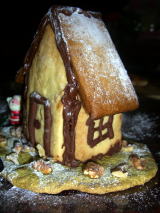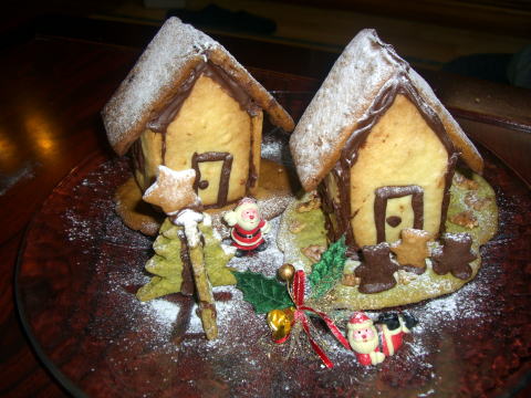 クリスマスに、クッキーを焼いてチョコレートで張り合わせ、家を2棟建てました。