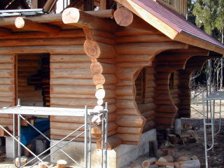 丸太の端をデザインカットで、